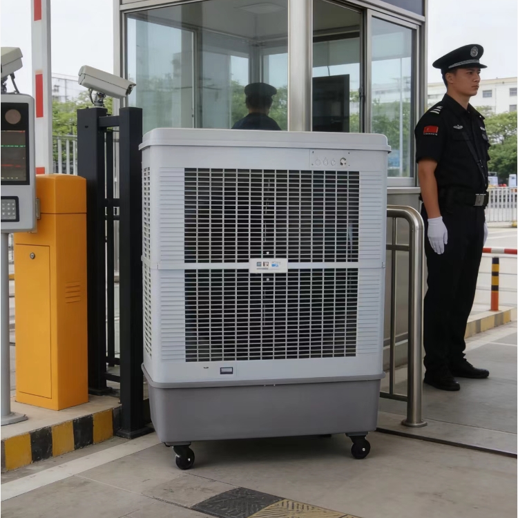 - 位置:将雷豹移动冷风机MFC18000D放置在岗亭门口外侧,斜向岗亭窗口/值守位送风,形成一道“清凉风幕”。
