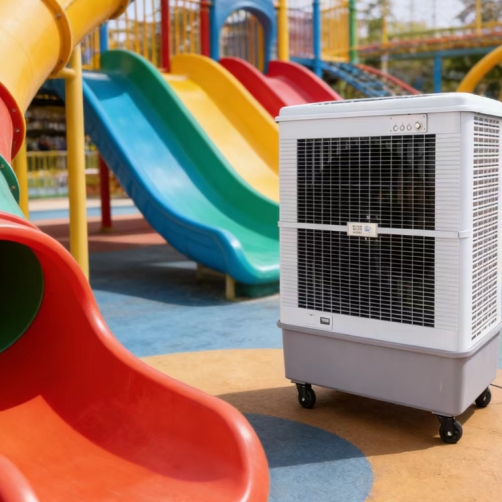 雷豹冷风机(蒸发式冷风机) 凭借“移动灵活、降温高效、能耗低、安全无氟利昂”的特性,成为游乐园夏季降温的最优解决方案,可在保障儿童安全的前提下,快速营造舒适的游玩环境。