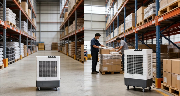 2. 针对高温货物存储区(如食品、电子元件),可将设备定向吹向货架间隙,实现局部降温;