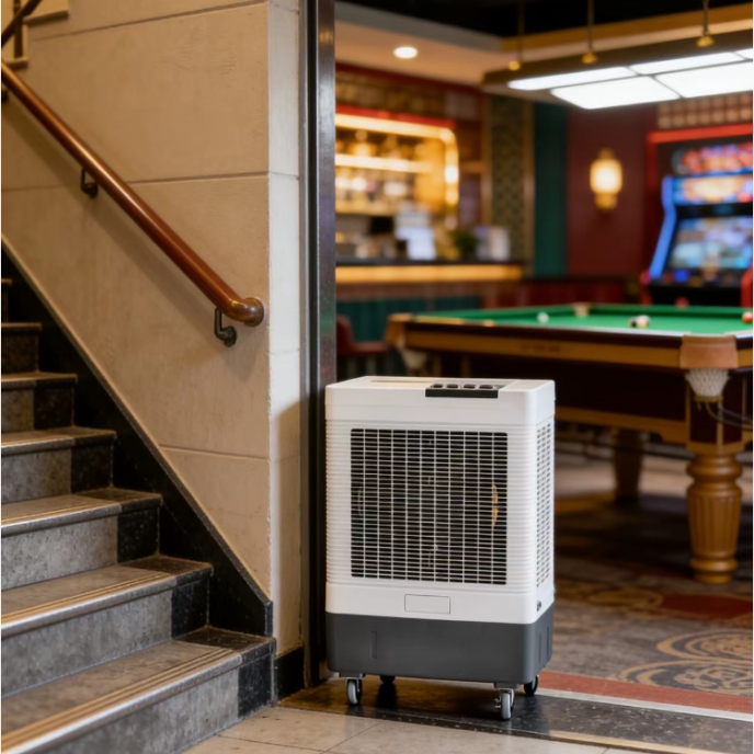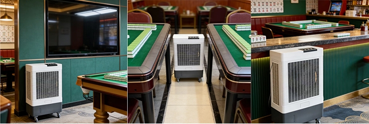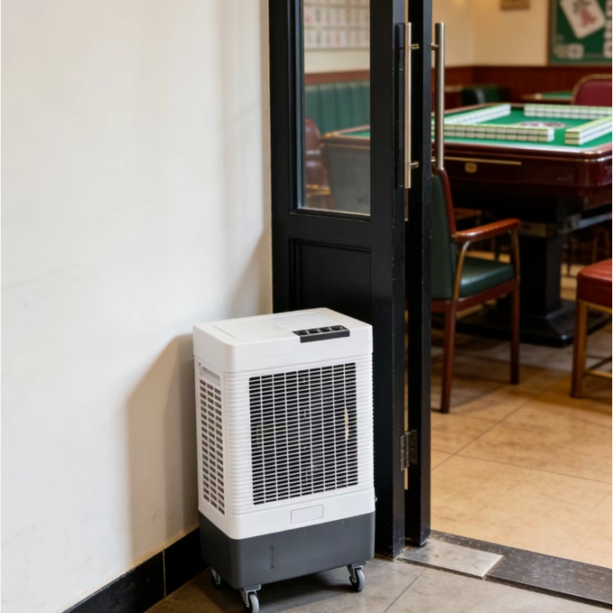 - 单桌覆盖:每2-3张麻将桌部署1台 雷豹冷风机MFC6000,放置于桌旁墙角或通道处,避免占用打牌空间;