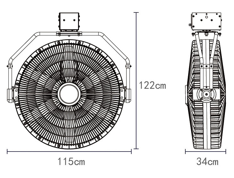 3:雷豹吊装EF3625BK风扇自动90°摇头广角送风。