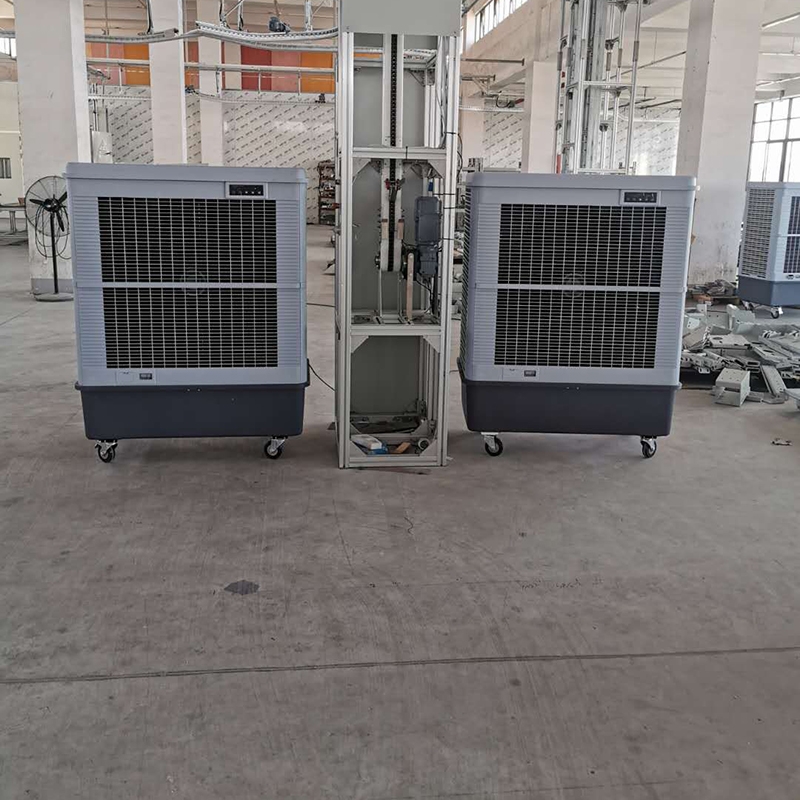 像这种钢结构的高大厂房,尤其是到了炎热的夏季,里面的空气都变成了热空气,很难在里面工作,在夏季,选择降温产品成了大家急不可耐的事情,而这款雷豹冷风机mfc18000是利用水的蒸发过程吸收空气的湿与热,使空气温度下降。即利用室外空气干球温度与湿球温度的差值达到降温制冷的目的。吹在人身上很凉爽是现在工业厂房夏季不可少的降温设备。