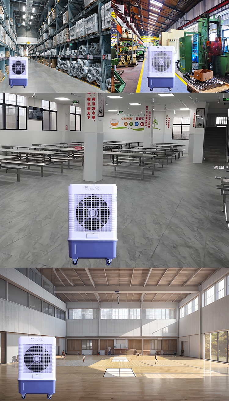 2.针对岗位进行局部降温需要通风、无法封闭的工作场,如:室外展会场,酒店后场,工地等整体空间安装空调困难的场所,给工作人员祛暑降温,提供凉爽舒适的工作环境;